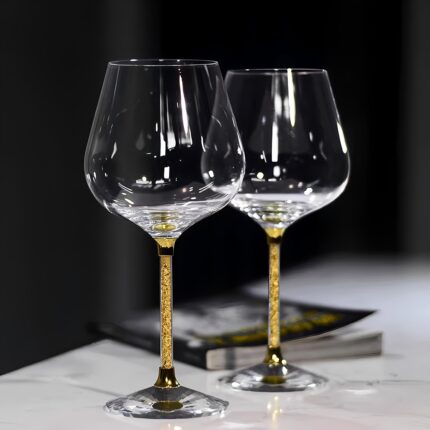 Classic Bordeaux Wine Glasses with Stem Gold – Set of 6 Wine Glasses, 10oz / 300ml