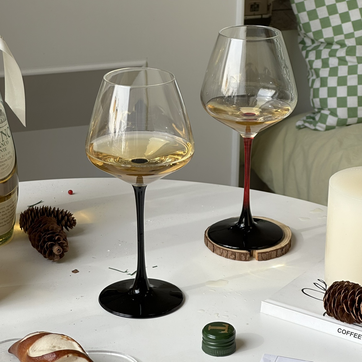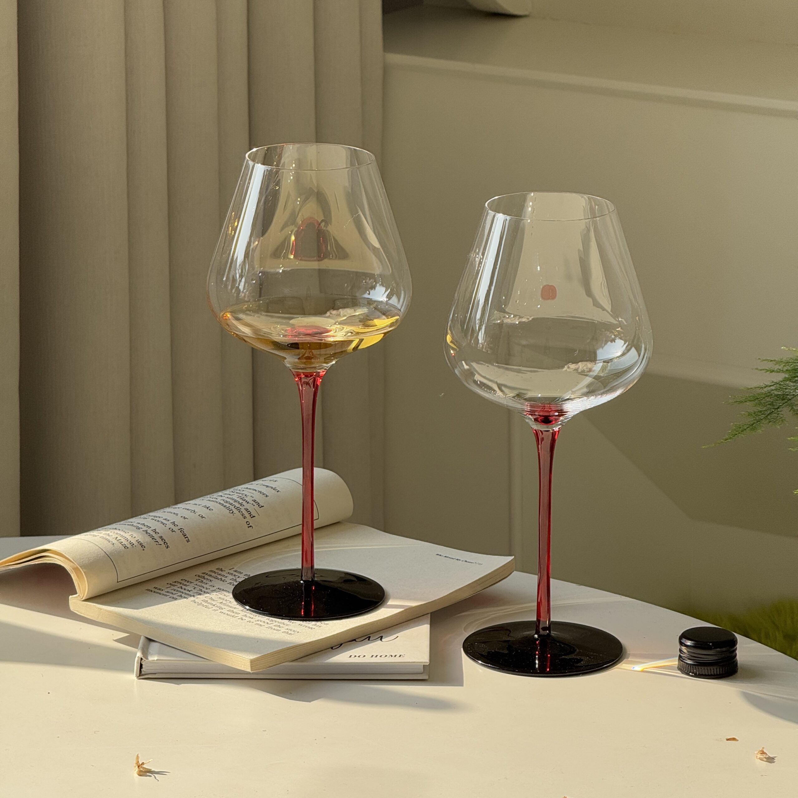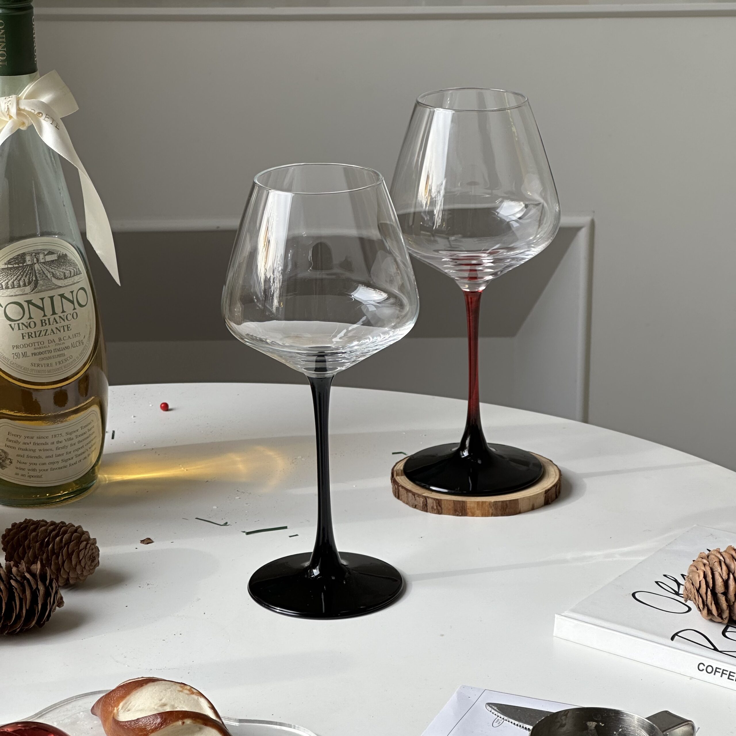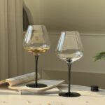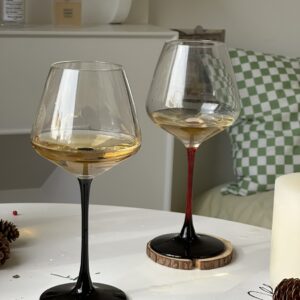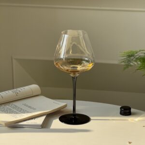 A classic hand-blown Burgundy wine glass with a modern twist – choose from deep red or matte black stem for added elegance and personality.