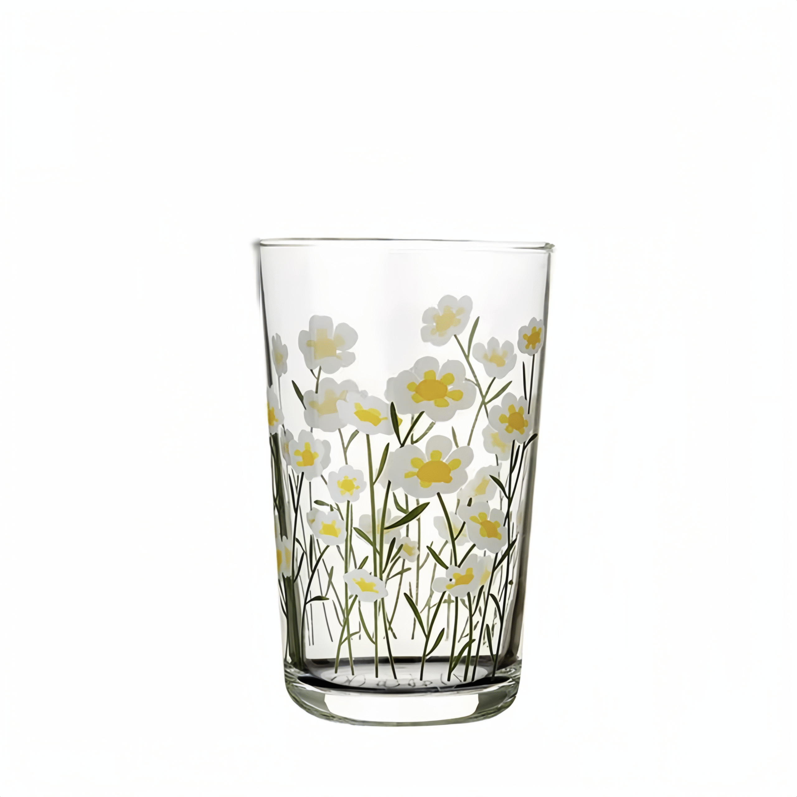 This Hand-Painted Pint Glass features a delicate daisy motif — small white petals and soft yellow centers, painted by hand in a light, rhythmic flow. The daisy symbolizes purity and optimism, bringing a touch of cheerful elegance to your everyday moments.