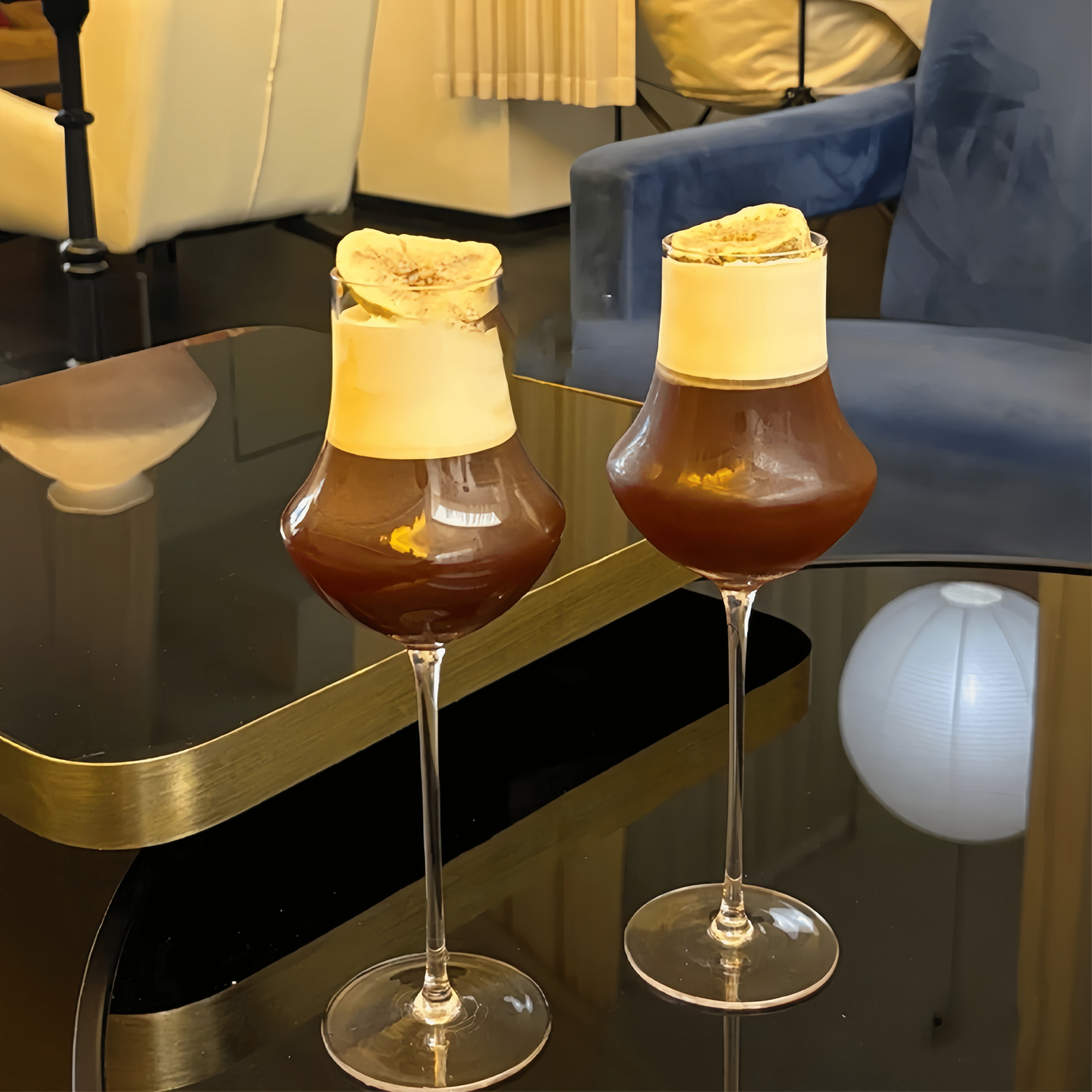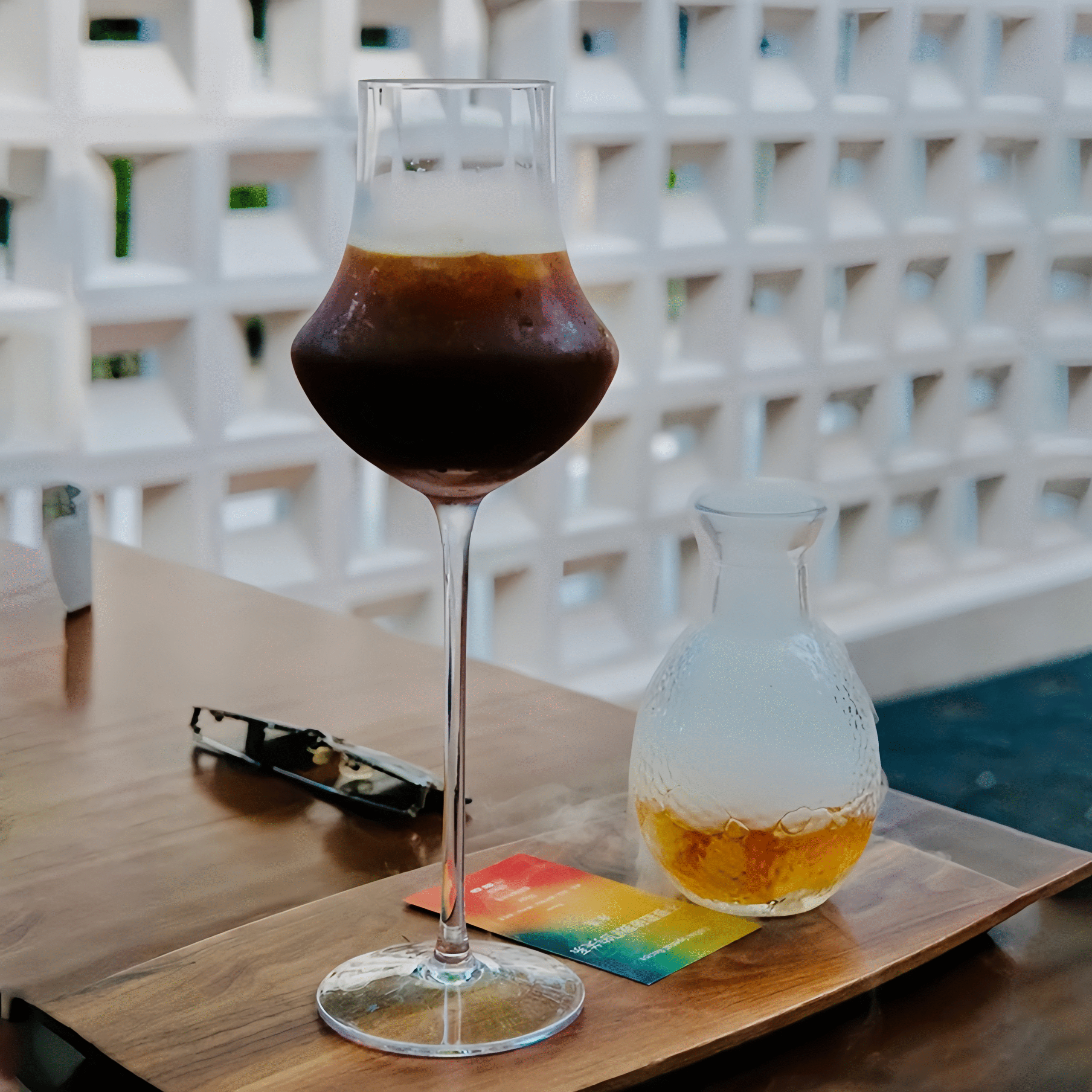 Tall, swirling, and tropical—the Island Twist Hurricane Glass evokes the rhythm of ocean breezes and the vibrance of island cocktails. Inspired by the traditional hurricane shape but with a hand-blown twist, this glass celebrates movement and light, ideal for fruit-forward, visually layered drinks.