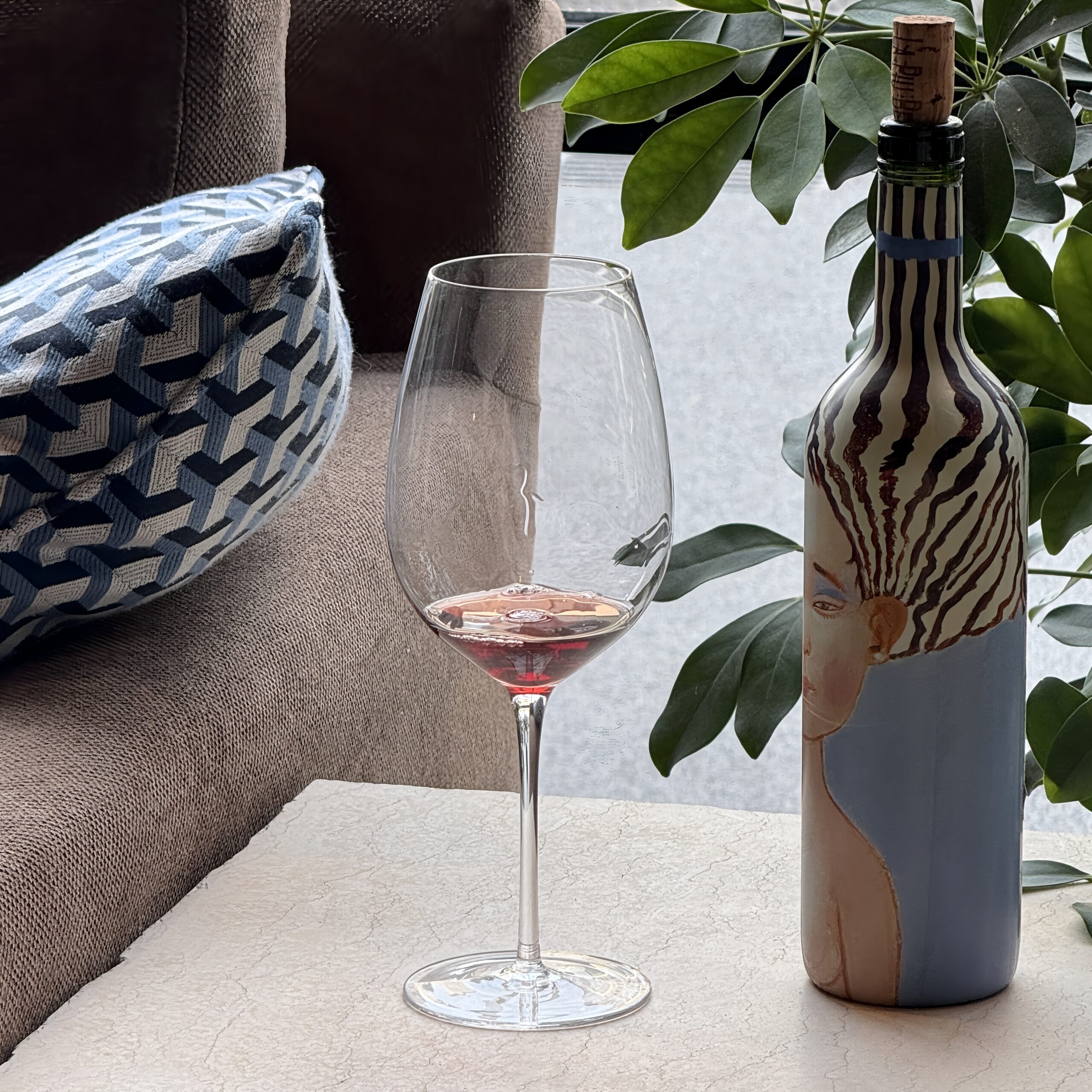 Hand-blown by artisans in Qixian, Shanxi, this 680ml glass is made from lead-free crystal, featuring a one-piece construction from base to rim and a razor-thin cold-cut lip. The generous bowl shape is designed to allow Pinot Noir and light-bodied reds to fully open, enhancing aroma and flavor with every swirl.