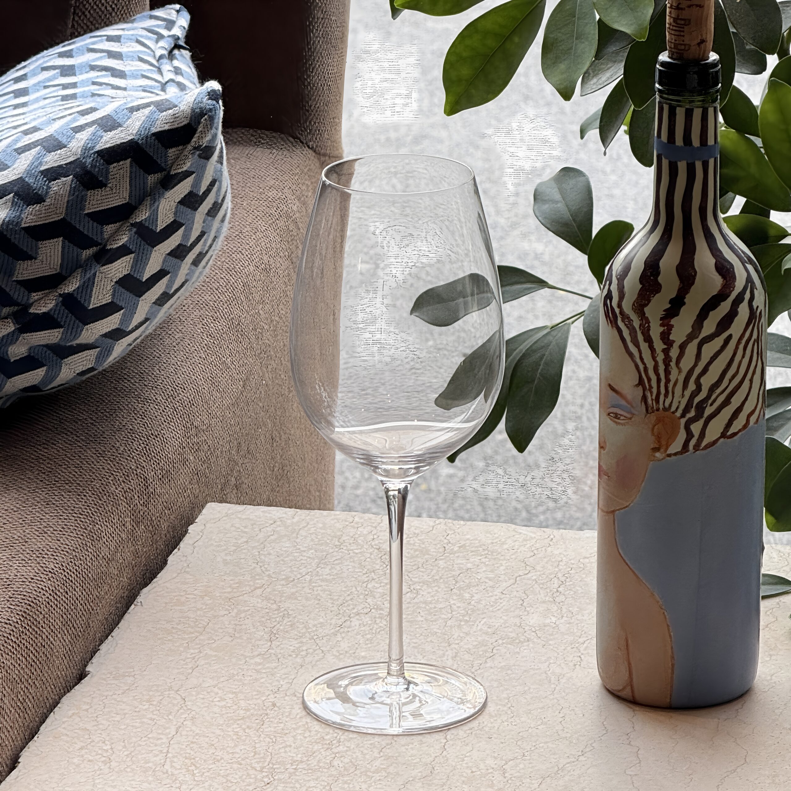 Without the distraction of color, the clear version highlights the purity of material and silhouette, making it a versatile, sophisticated choice for any wine occasion.